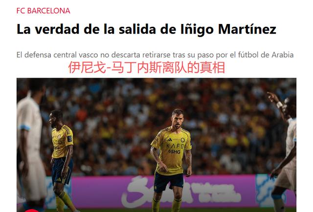 今年夏天,34岁的伊尼戈-马丁内斯突然离开巴萨,加盟沙特利雅得胜利。伊尼戈为何离队?8月31日,《每日体育报》揭秘背后的故事:沙特2年4000万欧元的薪水,实在无法拒绝……